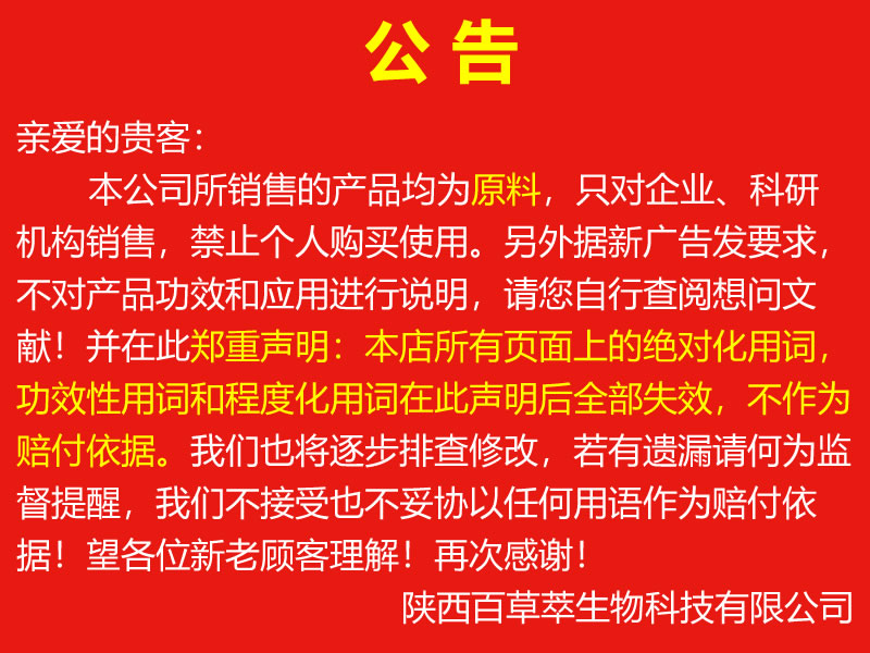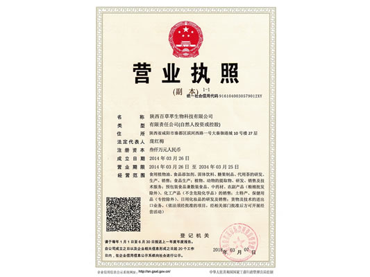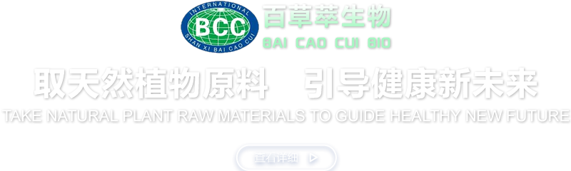 陜西百草萃生物科技有限公司,位于陜西省咸陽市秦都區濱河西路1號大秦御港城,公司成立于1996年,主要從事天然植物種植、研發(fā)、生產、加工、銷售為一體的高科技企業。主營醫藥原料、保健品原料、化妝品原料,精細化工原料。公司致力于人類健康保護事業“ 以科技為動力,以質量求生存” 的本質,依托陜西高新科技技術人才和科研優(yōu)勢,已形成多學科、全方位、高層次的技術管理精英團隊。充分利用秦巴山區的天然藥物資源,歷經多年發(fā)展為打造百草萃生物品牌奠定了基礎。
